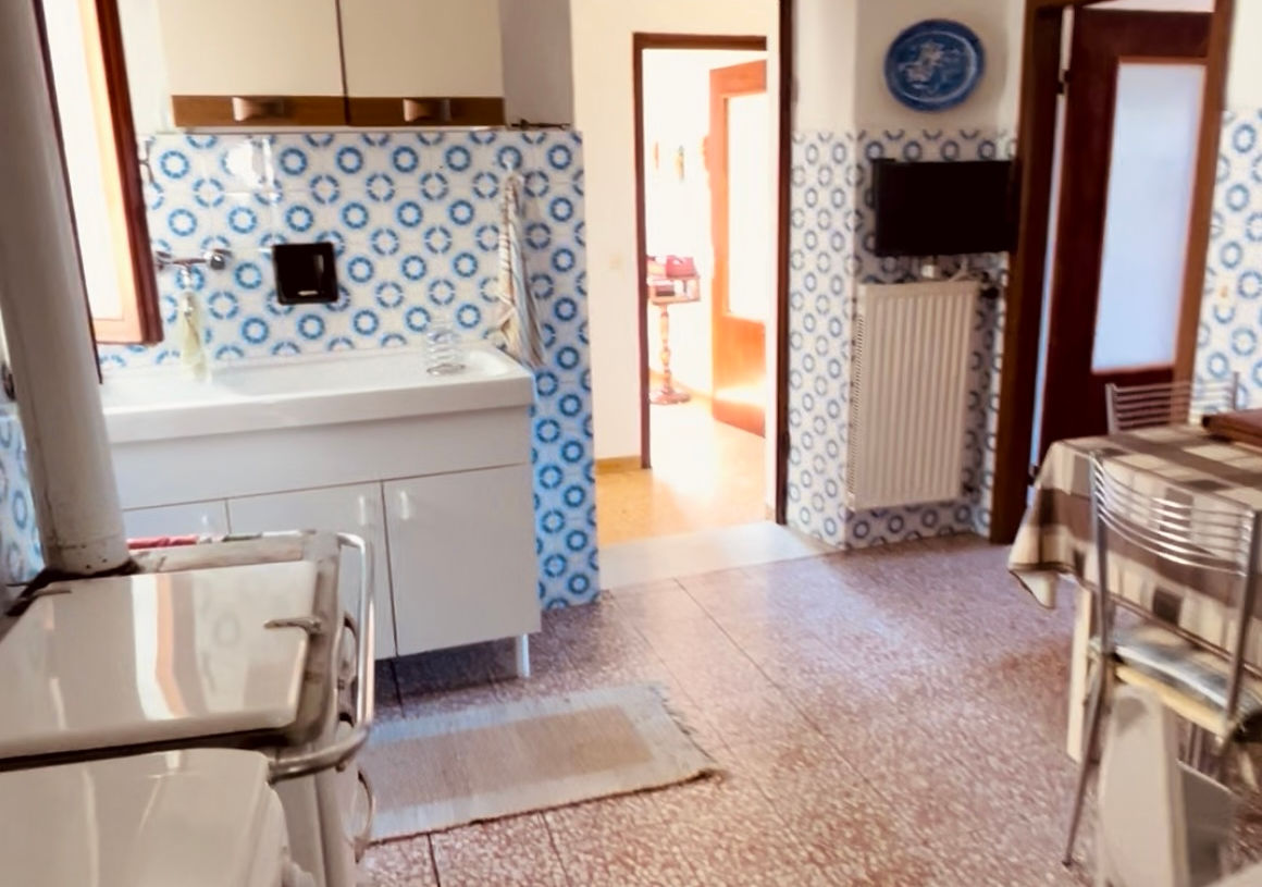 The home is heated by a traditional wood stove as well as an efficient oil system, ensuring year-round comfort. Terracotta-style tiles, nostalgic kitchen details, and the elegant curved balcony railing add to the warm, rustic atmosphere.