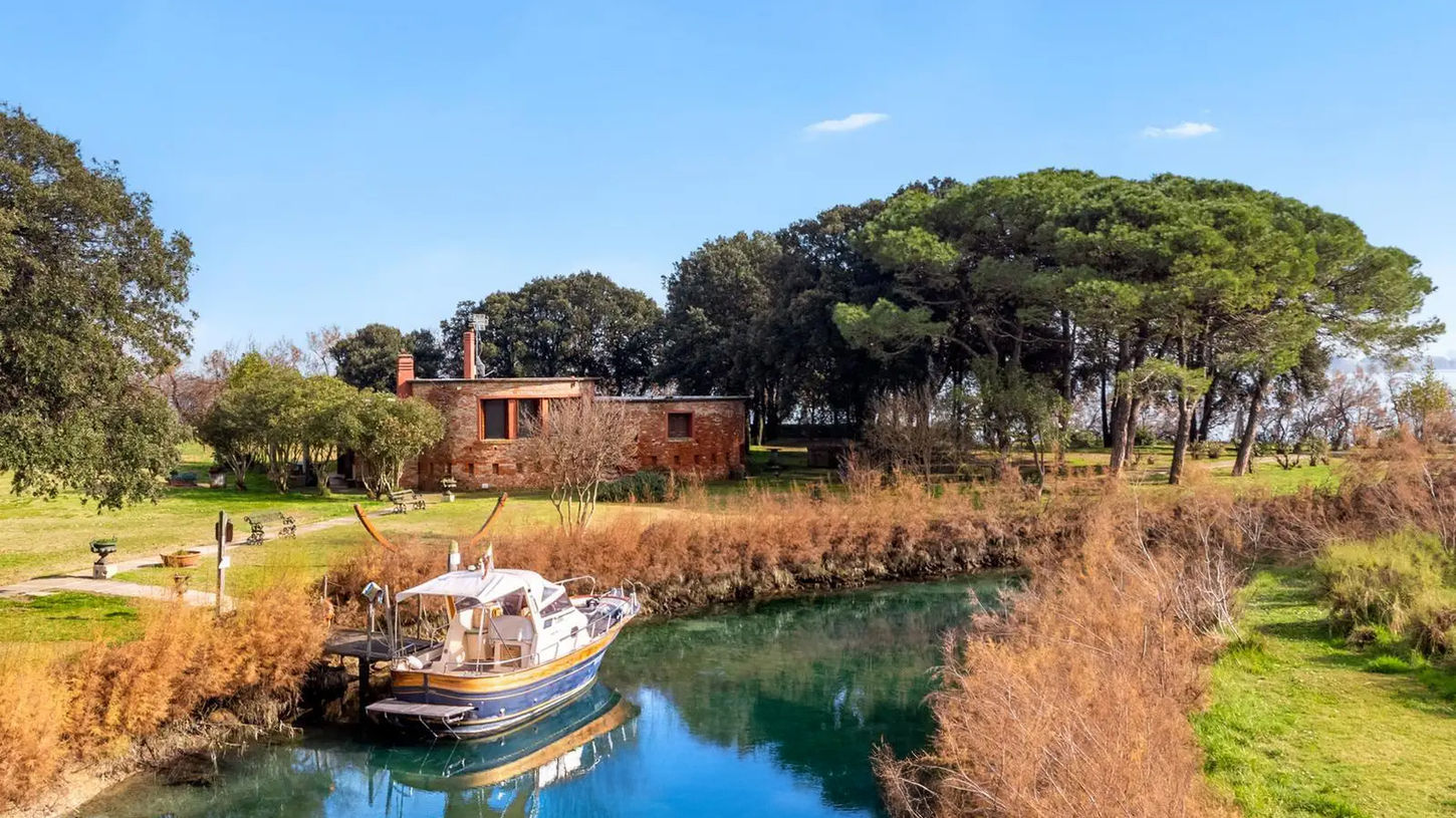 The main residence (approx. 170 m²) has been fully renovated, blending historic charm with modern comfort — complete with heating, air conditioning, and advanced electrical and water systems. A private dock ensures easy access by boat from Venice or the surrounding islands.